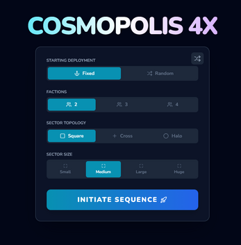 In Cosmopolis 4X, you begin with a humble homeworld on the edge of a quiet starfield. The rules are simple, the map is inviting, and your first few turns feel calm and intuitive — but just beneath that simplicity sits a surprisingly thoughtful tactical playground.